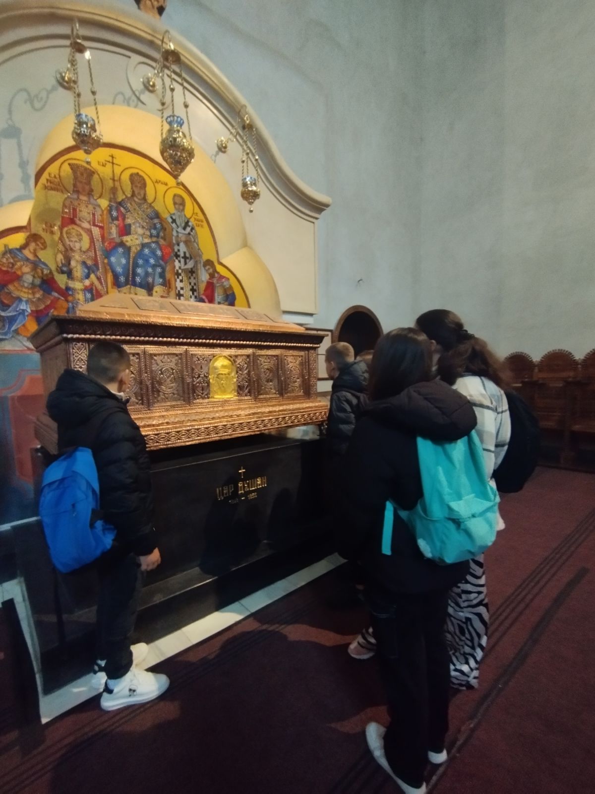 Након тога смо посетили цркву Светог Марка у којој су имали прилику да виде где почивају мошти цара Душана и патријарха Германа. Овде се у крипти такође налазе и тела последњих Обреновића, краља Александра и краљице Драге.