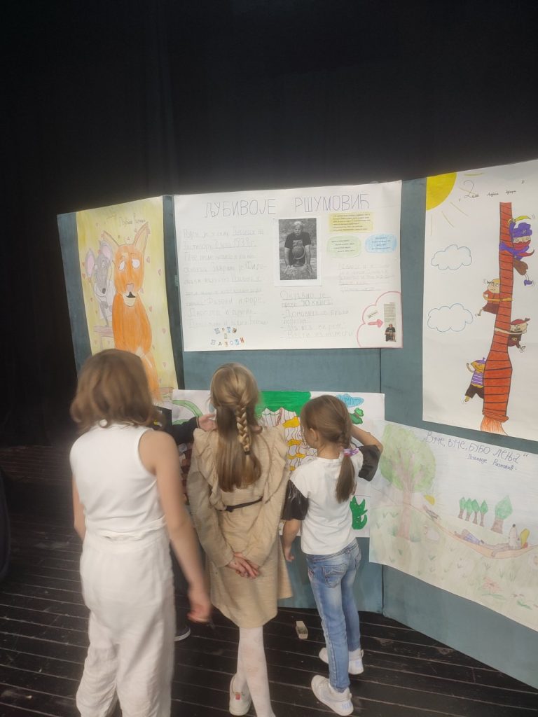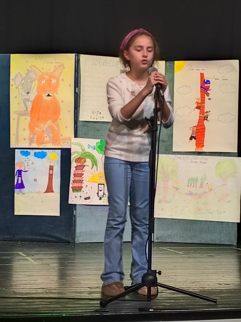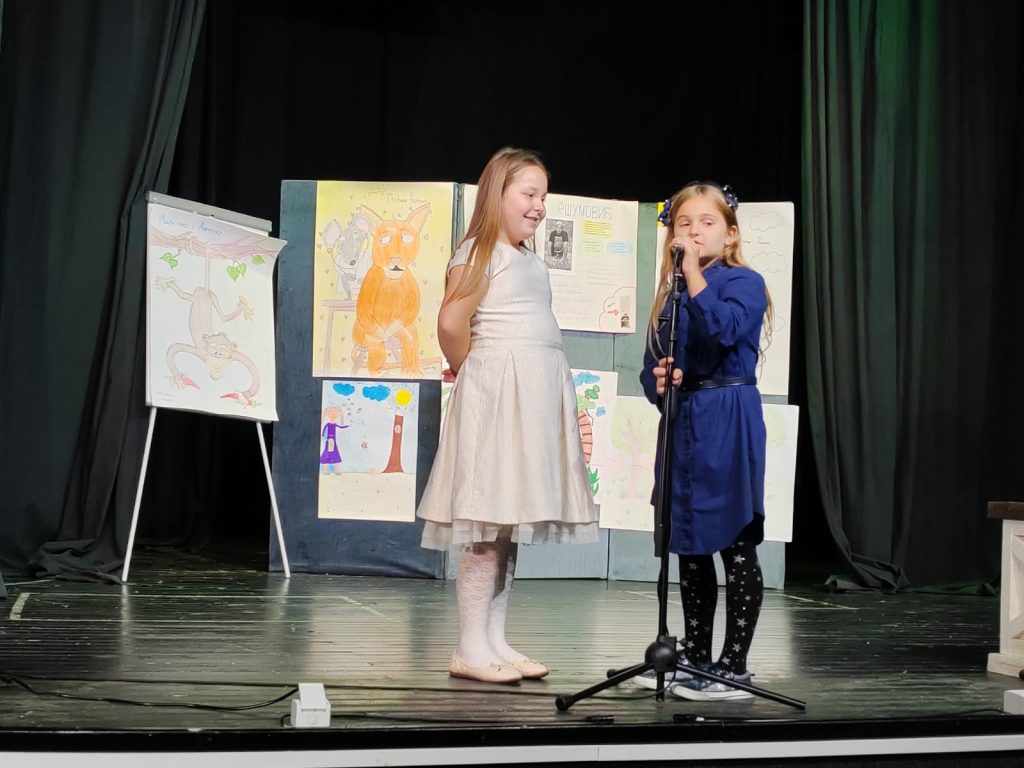 Том приликом ученици су са учитељицом Милицом Стефановић открили чаролију позоришта и на даскама које живот значе говорили стихове песама познатог песника. Таквом реализацијом часа развијамо говорну културу ученика, вежбамо језичку интонацију и дикцију, доприносимо јачању њиховог самопоуздања и креативности и учимо их елоквентности.