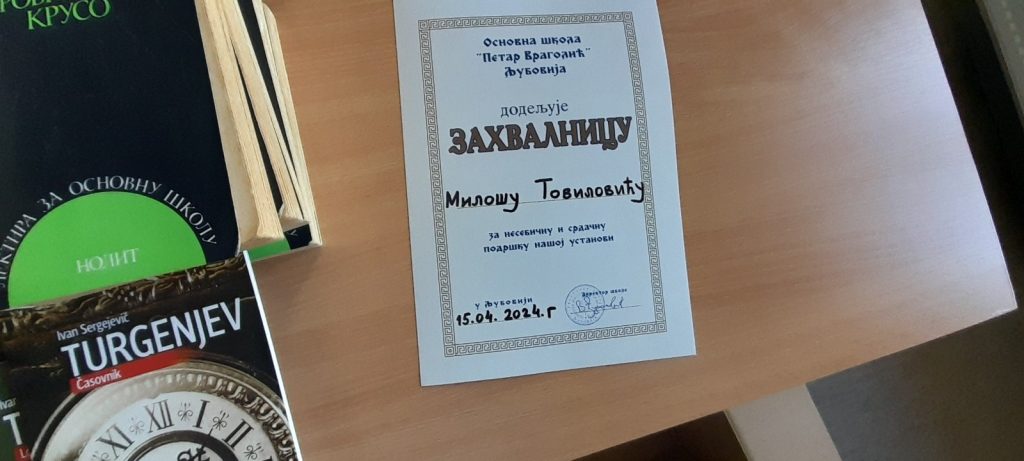Колектив школе захваљује господину Товиловићу.