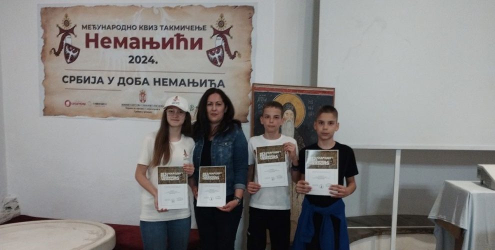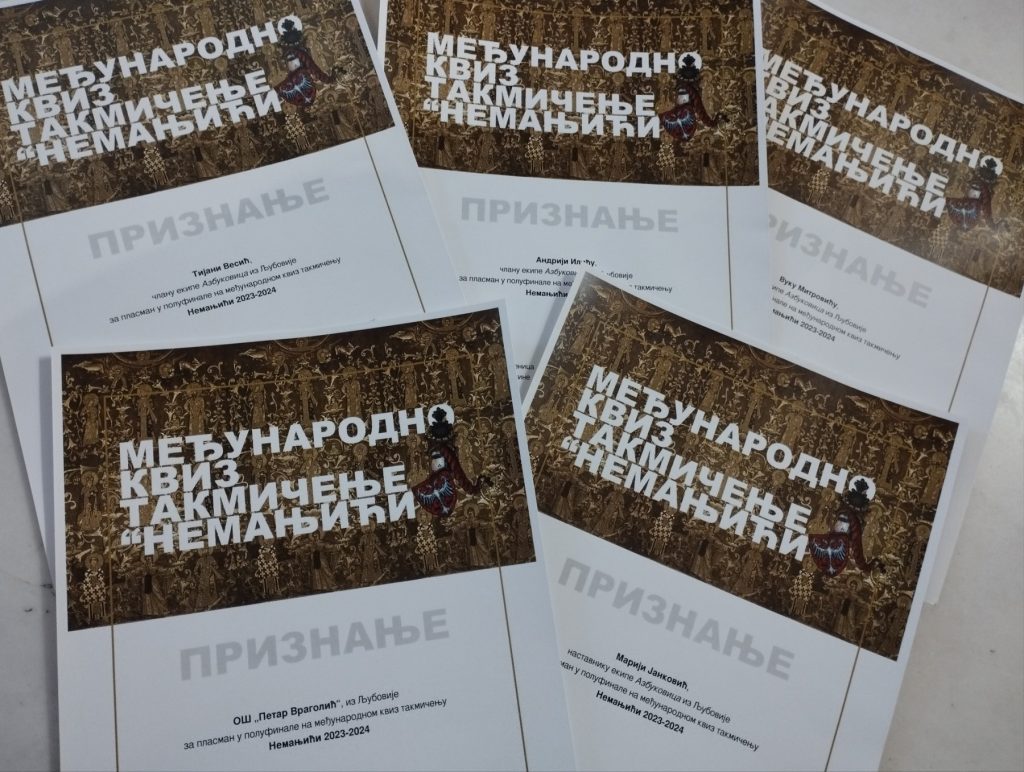 Екипа наше основне школе под именом „Азбуковица“, учествовала је у полуфиналу у завршници Међународног квиз такмичења „Немањићи“. Такмичење је одржано од 20 – 24. маја 2024. год. у манастиру Студеница и тема је управо била Србија у доба Немањића. Осам најбољих екипа из Србије и Републике Српске и четири екипе из дијаспоре су се нашле у завршници. Екипа се после два онлајн квалификациона круга пласирала у полуфинале. Такмичење је направљено као идеја да се деца дијаспоре повежу са децом из Србије. Ученици су се вредно спремали како у школи тако и преко онлајн састанака са ментором. Нашу екипу су чинили ученици шестог разреда: